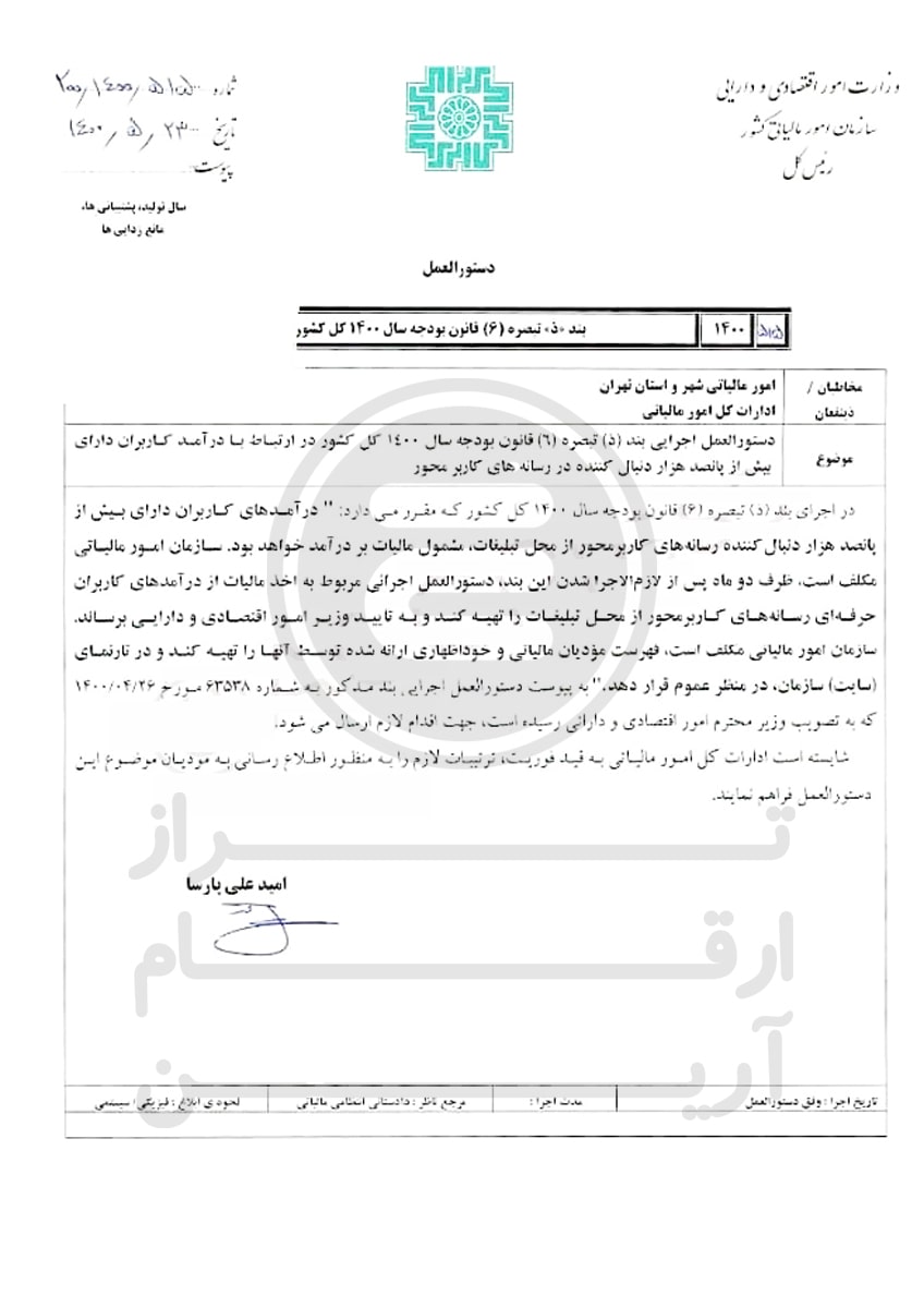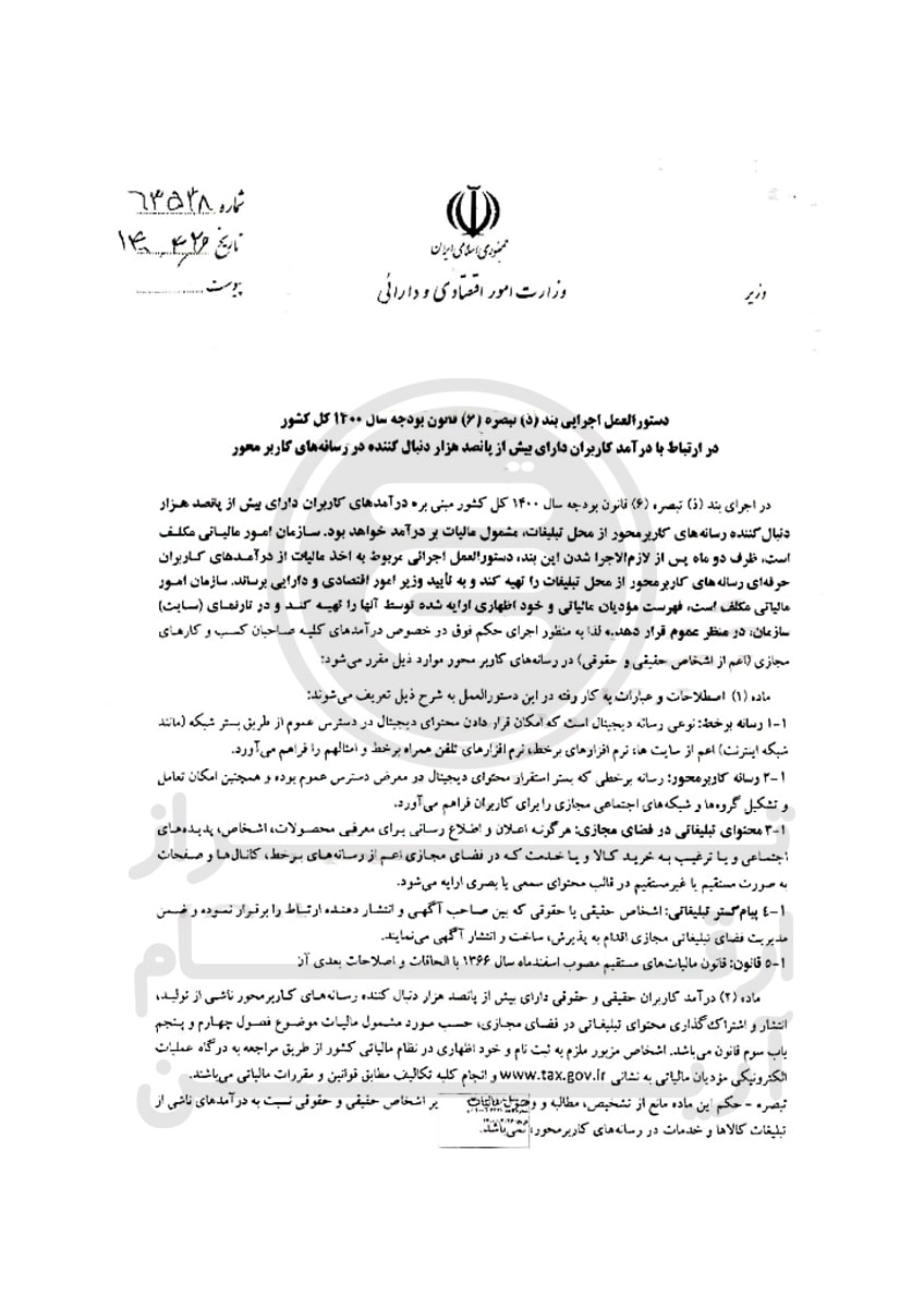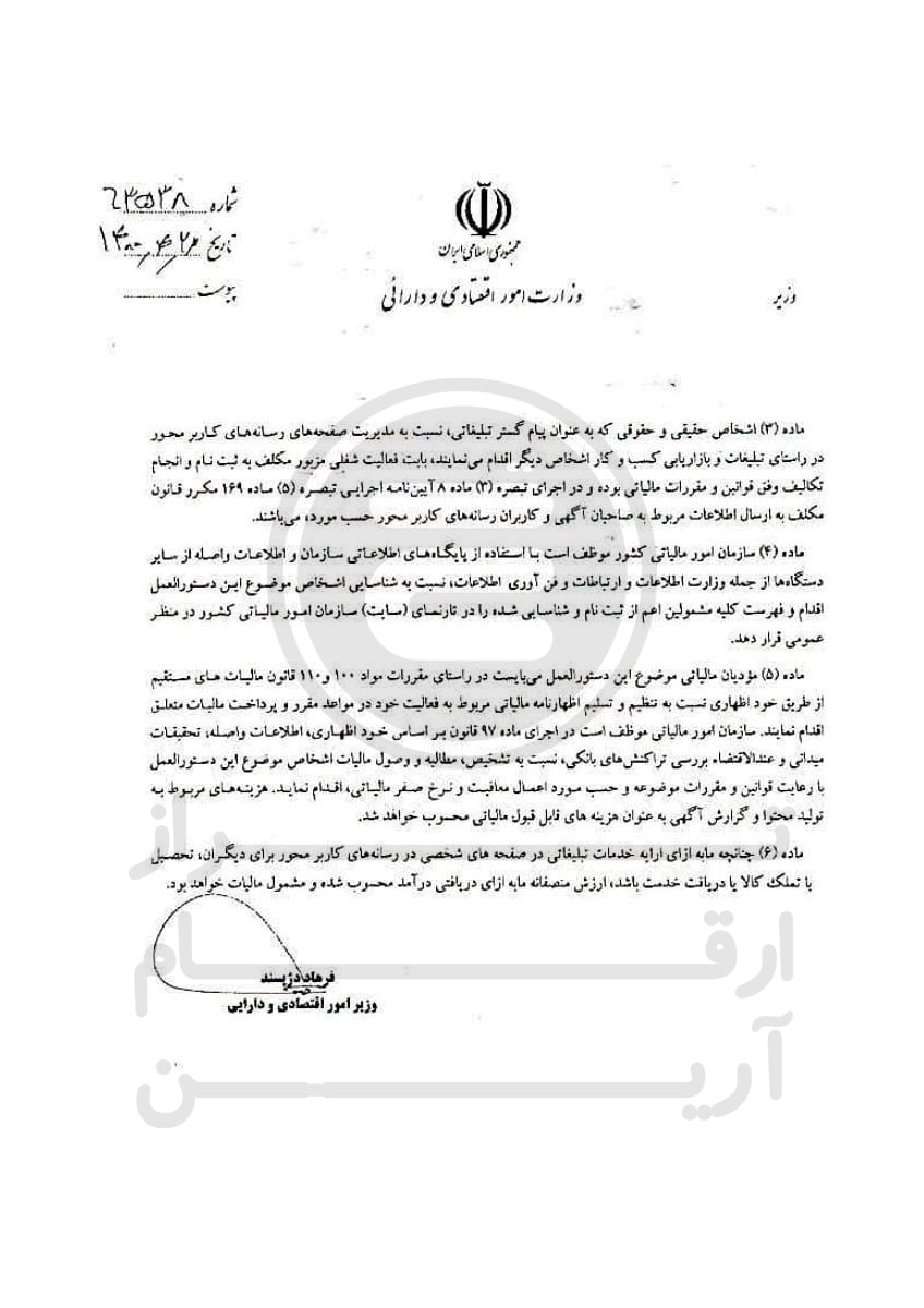 بخشنامه‌های مرتبط با پرداخت مالیات بر درآمد اینفلوئنسرها و بلاگرها و فالوور